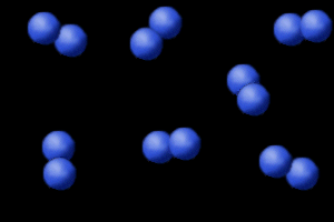 במצב הגזי, מולקולות החומר רחוקות זו מזו ונעות באופן בלתי תלוי אחת בשניה.